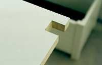 Pour pouvoir brancher les appareils dans la prise située en bas de la cloison, il faut pratiquer à la scie sauteuse un trou dans les étagères. Ce trou doit être suffisamment gros pour pouvoir passer la prise. On le positionne de telle sorte qu'il soit caché par l'appareil une fois mis en place.