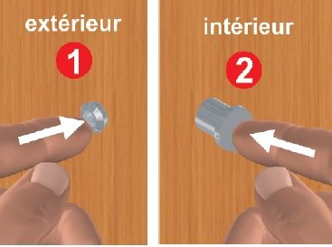 Reprenez le perçage sur l'autre face de la porte en prenant l'axe de l'empreinte comme point de centre (3).