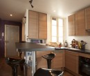 C’est appartement de 40m² était à l’origine un studio. En démolissant, les murs du couloir et du débarras, nous avons pu agrandir la cuisine. Une porte devenue inutile a été remplacée par une ouverture laissant ainsi entrer la lumière et facilitant l’implantation du canapé. Toutes les portes donnant dans la cuisine ont été supprimées pour faciliter la circulation. Le coin bar/repas s’étend sur l’ancien couloir et se rapproche du séjour. L’entrée et la cuisine ont été carrelées d’un seul matériau afin d’unifier l’espace. Une nouvelle pièce a été créée afin de séparer le coin nuit du séjour.