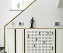 Casier de rangement pour chaque membre de la famille. Son design et sa place dans la maison le rend tant esthétique que fonctionnel, tout en soulignant l'architecture du hall par ses couleurs et matériaux © Jo-a
