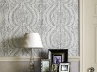 Salon contemporain aux couleurs claires. Fauteuil de position couché et capitonné. Deux meubles anciens et dorés viennent d'ajouter au décor. Sur l'un est posé une collection de quatre cadres anciens de forme et couleurs différentes ainsi qu'une lampe à p