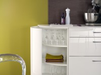Le galbe par Mobalpa c'est la capacité d'arrondir les angles, une construction simple qui permet d'avoir une ambiance douce et chaleureuse et des meubles parfaitement intégrés à leur espace. Studio Bergoend Styliste : Martine MOREL