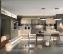 Implantation toute en légèreté pour cette cuisine qui semble suspendue. L'association de tons naturels crée une ambiance poudrée et aérienne dans laquelle le coin repas s'intègre en douceur. @Studio Bergoend