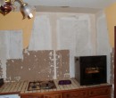 -Protection du sol. -Grattage et enduisage et lissage d'une partie du plafond(Ancien emplacement cheminée). Ponçage, impression et peinture du plafond en deux couches blanc MAT. -Enduisage d'un crépis en deux couches, puis une couche de lissage et pour finir un ratissage. Leger ponçage, impression puis application d'un sablé.