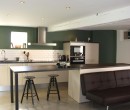Dans la pièce à vivre : les bars au sols typiques de Montpellier ont été rénovés les parties manquantes sont traitées en béton ciré ton pierre.