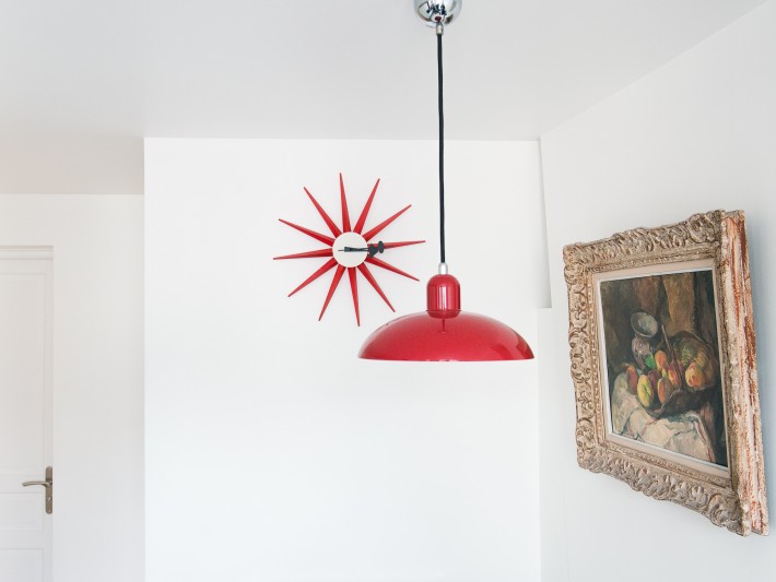 J'ai entièrement rénové cet appartement haussmannien de 70 m2 situé dans le 10ème arrondissement. J'ai souhaité apporter des touches de couleur chic dans cet appartement masculin, des bleus, rouge orangé, et des matières nobles comme le bois, le marbre, le lin et les carreaux ciment dans la cuisine et la SDB qui mettent en valeur des pièces souvent oubliées.