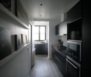 Cuisine organisée en longueur et en deux espaces.