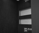 Un jeu de contraste et de graphisme en jouant sur des tailles de carreaux differentes, et des matières + couleurs différentes l'argent prend des tonalité champagne et découpent un noir valeureux