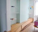 Les espaces morts créés par des remontées de cheminée posent souvent des problèmes d'aménagement. Le système Suspensions s'en affranchit en mariant un buffet bas de bambou s'adaptant parfaitement à l'espace créé et des suspensions de métal pour habiller l