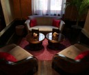 Aménagement d'un coin de repos aux couleurs sombres avec des coussins rouges qui apportent de l'élégance. On retrouve le côté asiatique grace aux statuettes centrales posées sur des petites tables basses noirs laquées. Crédit photo : Zehnder Groupe