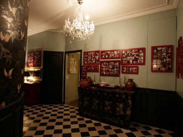 Entrée décoration noir et blanc avec carrelage mosaïque