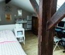 Le charme de l'ancien a toutefois été conservé dans cette rénovation. Entre poutres à l'ancienne et mobilier vintage, tout est pensé pour garder en mémoire l'origine de cette pièce.
