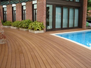 Fixer les lambourdes sur chaque support. Conserver un espace de 5 mm en bout entre deux lambourdes. La fixation des lambourdes se fait en fonction du support soit par vissage traversant soit à l'aide d'équerres en Inox. Dans ce dernier cas, les équerres doivent être disposées en quinconce et le support être suffisamment large pour accueillir à la fois la lambourde et l'équerre.
